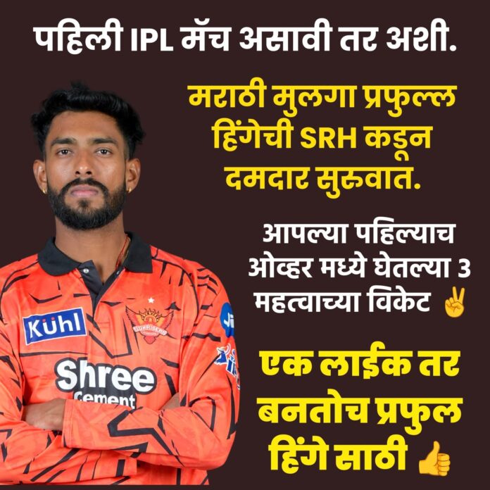 मुंबई, दि. १३ : आयपीएल २०२६ मध्ये एका नव्या ताऱ्याचा उदय झाला असून विदर्भाचा युवा गोलंदाज Praful Hinge याने आपल्या पहिल्याच सामन्यात ऐतिहासिक कामगिरी करत सर्वांचे लक्ष वेधून घेतले आहे. Sunrisers Hyderabad कडून खेळताना त्याने Rajasthan Royals विरुद्ध पहिल्याच षटकात ३ विकेट्स घेत सामना अक्षरशः पालटून टाकला.