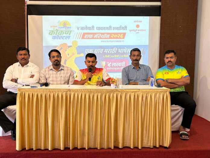 रत्नागिरी, दि. १२ : नवीन वर्षाच्या पहिल्या रविवारी, ४ जानेवारी २०२६ रोजी रत्नागिरी धावपटूंच्या उत्साहाने पुन्हा निनादणार आहे. सुवर्णसूर्य फाउंडेशनतर्फे आयोजित कोकण कोस्टल हाफ मॅरेथॉनच्या तिसऱ्या पर्वासाठी यंदा देशातील ३०० हून अधिक शहरांमधून आणि १२ राज्यांतून तब्बल २२०० फिटनेस टुरिस्ट रत्नागिरीत दाखल होणार आहेत. जगात पहिल्यांदाच एखादी अर्ध मॅरेथॉन संपूर्णपणे मराठी भाषेला समर्पित केली गेल्याचा अभिमानही यावेळी व्यक्त करण्यात आला.