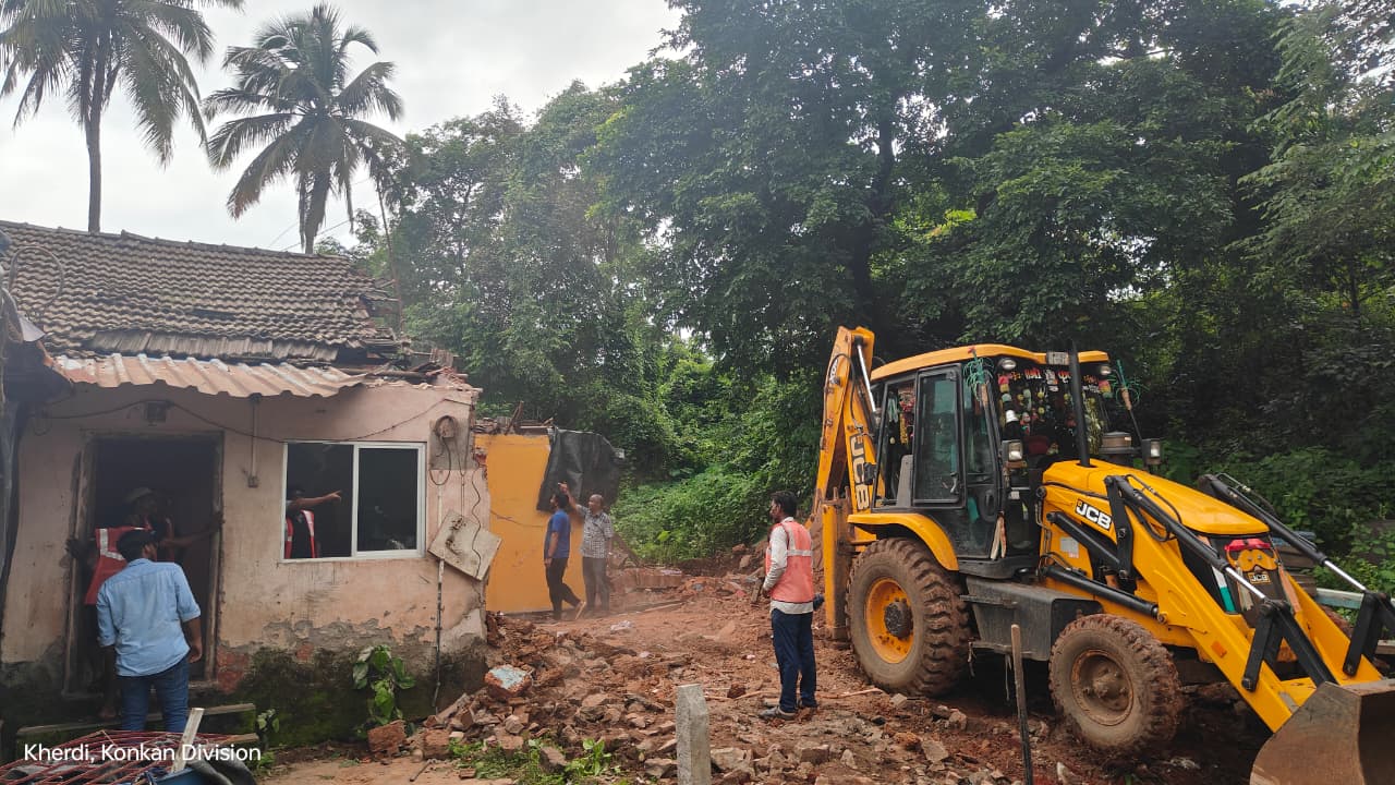 चिपळूण, दि. ०५ (प्रतिनिधी): चिपळूण तालुक्यातील खेर्डी भागात कोकण रेल्वे प्रशासनाने आज सकाळी मोठी कारवाई करत त्यांच्या मालकीच्या जागेतील अनधिकृत बांधकामे हटवली. ही कारवाई गुहागर-विजापूर राष्ट्रीय महामार्गालगत असलेल्या रेल्वे ब्रिज शेजारी करण्यात आली असून, यामध्ये स्थानिकांनी उभारलेली दुकाने आणि घरे यांचा समावेश होता.