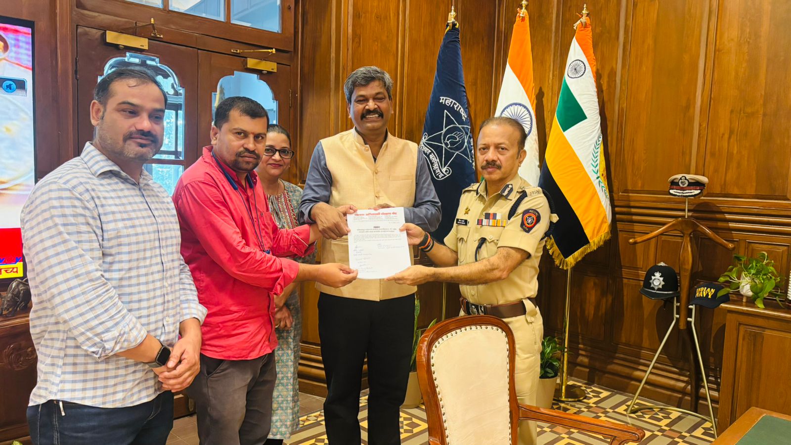मुंबई, दि. १५ (क्षितिज कदम): गणपती विसर्जनाच्या वार्तांकनादरम्यान साम टीव्हीचे पत्रकार विकास मिरगणे यांना पोलीस निरीक्षक शांताराम नाईक यांनी मारहाण केल्याप्रकरणी पत्रकार अभिव्यक्ती संरक्षण मंच आणि इतर पत्रकार संघटनांनी मुंबई पोलीस आयुक्त देवेन भारती यांची भेट घेतली.