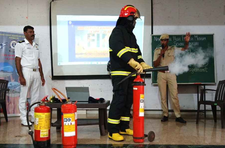 रत्नागिरी, दि. २० (प्रतिनिधी): भारतीय तटरक्षक दलातर्फे येथील नवनिर्माण हाय इंग्लिश मिडियम शाळेत ‘फायर सेफ्टी’ या विषयावर कार्यशाळा घेण्यात आली. यात भारतीय तटरक्षक दलाचे अधिकारी श्री. विष्णू, अधिकारी रोशन विश्वकर्मा, श्याम लाल यांच्यासह फायरमन जय प्रकाश, पेय्याला राजू, श्री. रविंदर, श्री. अजय यांनी मार्गदर्शन केले.