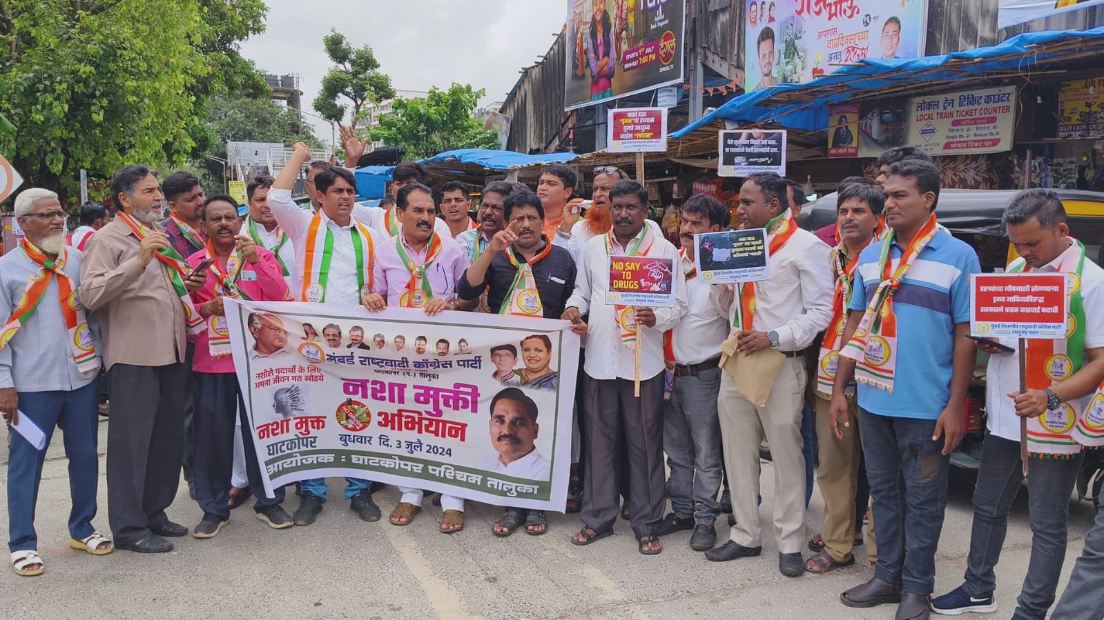 कार्यकर्त्यांनी यावेळी सरकारच्या विरोधात घोषणा दिल्या. दरम्यान, राजकीय वरदहस्त असल्यानेच या अमली पदार्थांच्या उत्पादनावर, विक्री तसेच वितरणावर कारवाई करण्यास प्रशासन हतबल आहे असा आरोप यावेळी केला. या विरोधात राष्ट्रवादी कॉंग्रेस (शरदचंद्र पवार), मुंबई आक्रमक झाली असून, नशामुक्ती अभियानास आज 3 जुलैपासून नशामुक्त घाटकोपर अंतर्गत सुरुवात केली आहे.
