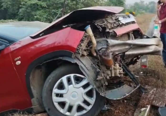 संगमेश्वर, दि. १७ : तालुक्यातील तुरळ येथे मुंबई- गोवा महामार्गावर बुधवारी संध्याकाळी पाच वाजण्याच्या सुमारास मुंबईहून गणपतीपुळे येथे जाणाऱ्या चारचाकी वाहनाला भीषण अपघात झाला. या अपघातात वाहन चालकाचा जागीच मृत्यू झाला असून अन्य एक प्रवासी किरकोळ जखमी झाला आहे. अपघातग्रस्त वाहन ब्रेझा कार (क्रमांक एमएच 04 जेव्ही 7198) हे भरधाव वेगात येत असल्याचा अंदाज व्यक्त केला जात आहे. वाहनाने रस्त्यालगत असलेली साईड गार्ड तोडून रस्त्याबाहेर घसरण घेतली. अपघात इतका भीषण होता की गाडीचा अर्धा भाग रस्त्याखाली गेला असून पुढील भाग रस्त्यावरच अडकून राहिला आहे.