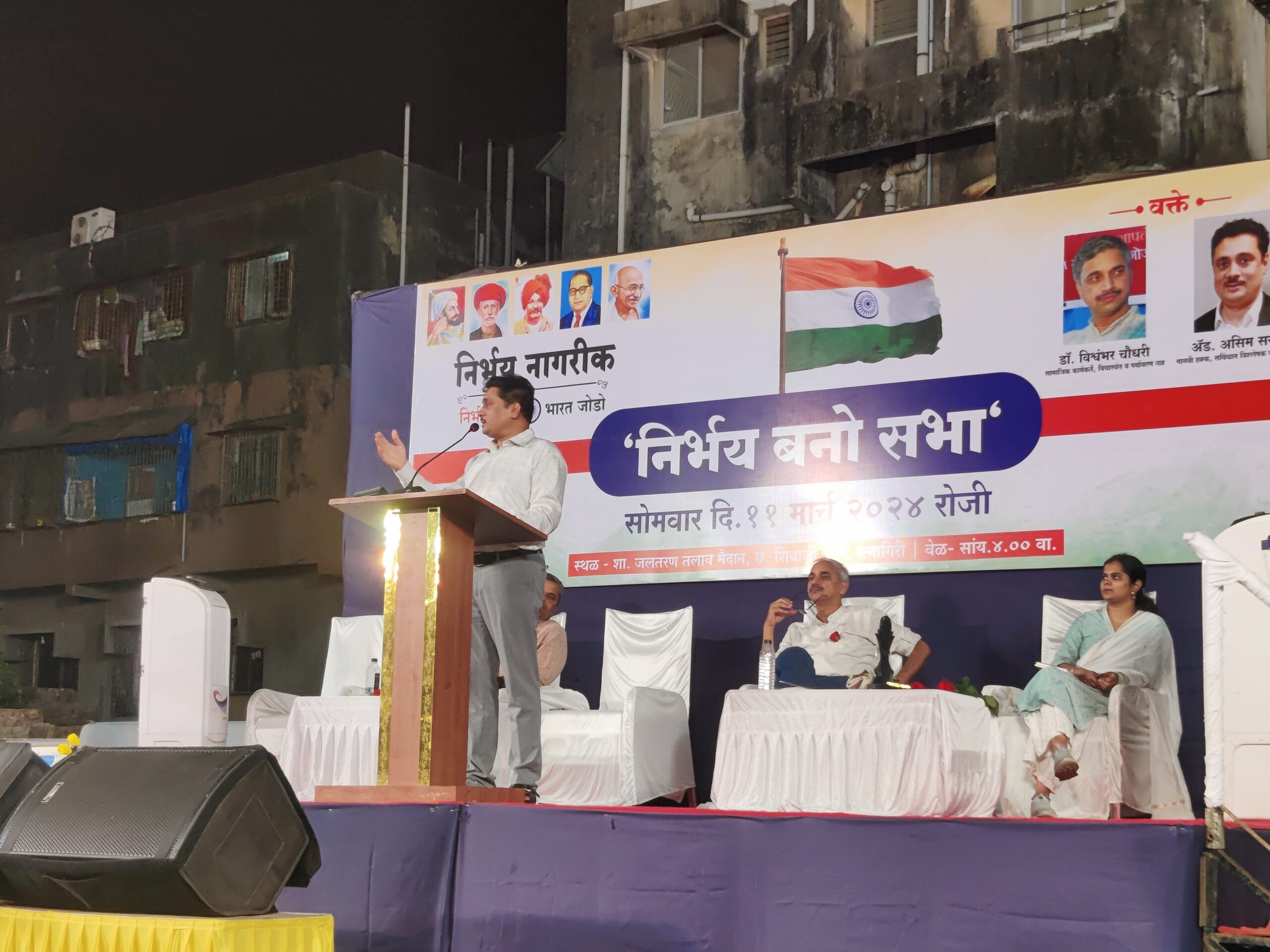 निर्भय बनो सभा रत्नागिरीतील छ्त्रपती शिवाजी नगर शासकीय जलतरण तलावाजवळ झाली. त्यावेळी ते बोलत होते. या वेळी व्यासपीठावर सामाजिक कार्यकर्ते, विचारवंत व पर्यावरण तज्ज्ञ विश्वंभर चौधरी, ॲड. श्रेया आवळे, श्री. उत्पल उपस्थित होते.