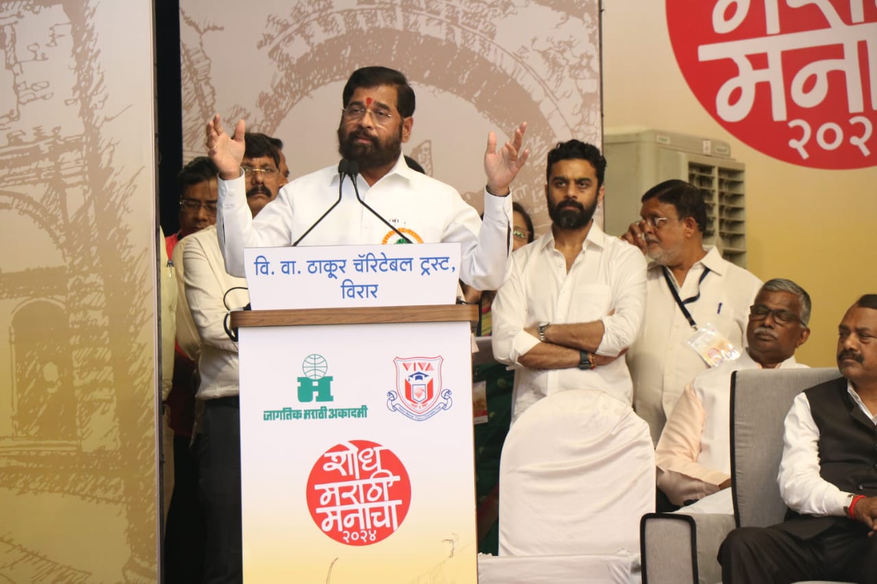 वि.वा ठाकूर महाविद्यालय,विरार येथे 19 वे जागतिक मराठी संमेलनाचे आयोजन करण्यात आले होते त्यावेळी मुख्यमंत्री एकनाथ शिंदे बोलत होते.