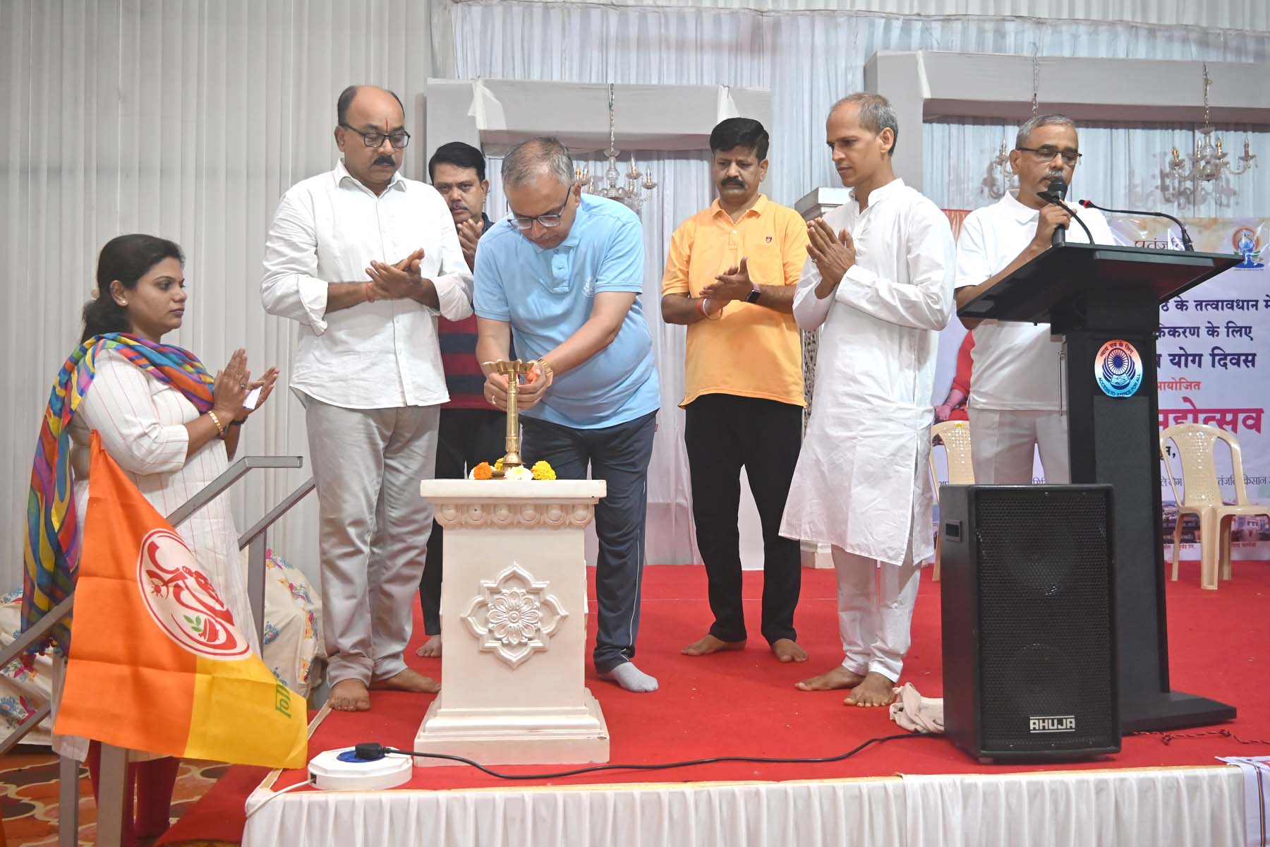 प्रमुख जिल्हा व सत्र न्यायाधीश सुनील गोसावी, विधी सेवा प्राधिकरणाचे सचिव, न्यायाधीश निखिल गोसावी, अधिवक्ता परिषदेचे जिल्हाध्यक्ष अॅड. भाऊ शेट्ये, महिला पतंजलीच्या संगिता कुलकर्णी, पतंजली योग समितीचे जिल्हा प्रभारी अधिवक्ता विद्यानंद जोग आदी व्यासपीठावर उपस्थित होते.