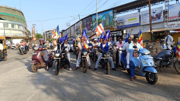शेकडो दुचाकीस्वारांनी पंचशील ध्वजांनी सजवलेल्या वाहनांसह या रॅलीत सहभाग घेतला. नियोजित मार्गावरून अत्यंत शिस्तबद्ध पद्धतीने मार्गक्रमण करत आंबेडकरी बांधवांनी संघटित शक्तीचे प्रभावी दर्शन घडवले. “डॉ. बाबासाहेब आंबेडकरांचा विजय असो” आणि “तथागत गौतम बुद्धांचा विजय असो” अशा घोषणांनी संपूर्ण परिसर दणाणून गेला. या घोषणांमधून सामाजिक समता, बंधुता आणि न्यायाच्या मूल्यांचा जागर घडत असल्याचे चित्र पाहायला मिळाले.