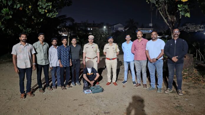14 नोव्हेंबर 2025 रोजी पोलीस पथक मांडवी, पेठकिल्ला, मिरकरवाडा परिसरात पेट्रोलिंग करत असताना मलबार जेटीजवळील पडीक बोटीच्या कॅबिनजवळ एक इसम संशयास्पद हालचाली करताना दिसला. हिरव्या रंगाची सॅक पाठीवर घेतलेल्या या इसमास थांबवून चौकशी केली असता त्याने उडवाउडवीची उत्तरे दिली. त्यामुळे पंचांच्या उपस्थितीत त्याची तपासणी करण्यात आली.