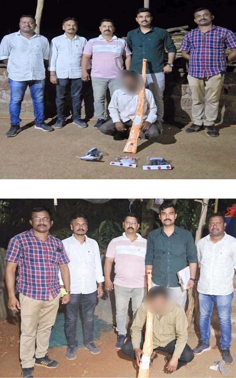 यापैकी एक अनिल भिकू गुहागरकर वय 53 राहणार बोरज शिवफाटा, तालुका खेड यांच्याकडून सिंगल बॅरल काढतुसाची बंदूक आणि आठ जिवंत काढत असे जप्त करण्यात आली.