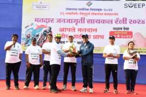 रत्नागिरी, दि. 7 (जिमाका):  रत्नागिरी उपविभागीय कार्यालय आयोजित आणि रत्नागिरी सायक्लिस्ट क्लब व जिल्हा प्रशासनाच्या सहकार्याने मतदान जनजागृती करणारी सायकल रॅली शहरातून आज काढण्यात आली. ‘मी मतदान करणार आहे, तुम्हीही करा, तुमच्या शेजाऱ्यांनाही करायला प्रोत्साहित करा. ती आपली जबाबदारी आणि कर्तव्य आहे’, असे आवाहन जिल्हाधिकारी एम देवेंदर सिंह यांनी केले.