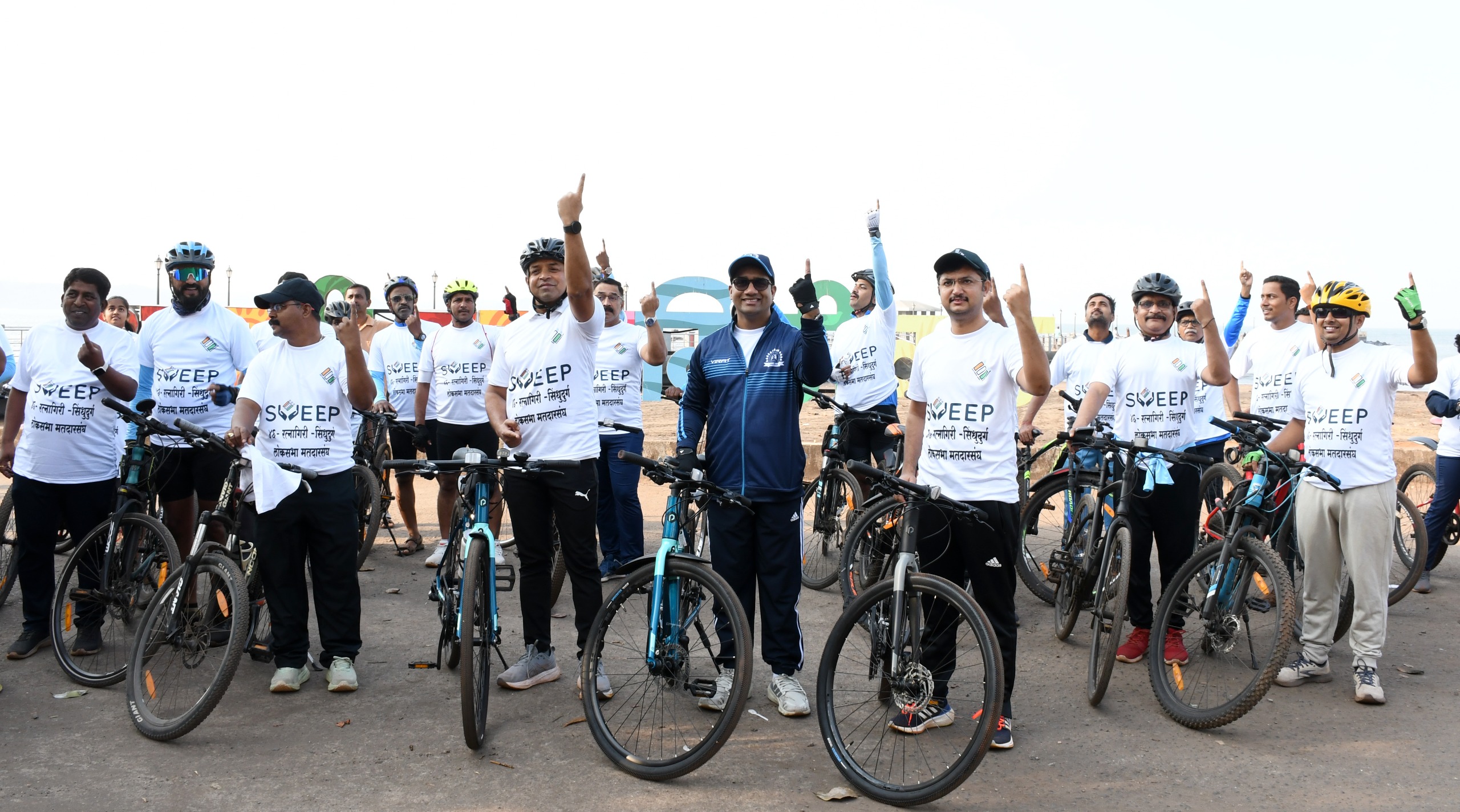 येथील पोलीस मैदानात आज सकाळी रॅलीसाठी सायक्लिस्ट आणि अधिकारी, कर्मचारी उपस्थित होते. या रॅलीला प्रोत्साहित करण्यासाठी पोलीस दलाचा बँड तैनात होता. तो देशप्रेमावर आधारित गीताची धून वाजवित होता. यावेळी मुख्य कार्यकारी अधिकारी कीर्ती किरण पुजार, पोलीस अधीक्षक धनंजय कुलकर्णी, अपर जिल्हाधिकारी शंकर बर्गे, निवासी उपजिल्हाधिकारी चंद्रकांत सूर्यवंशी, उपजिल्हा निवडणूक अधिकारी राहूल गायकवाड, उपजिल्हाधिकारी सर्वसाधारण शुभांगी साठे, उपमुख्य कार्यकारी अधिकारी राहूल देसाई, जिल्हा नियोजन अधिकारी सत्यविनायक मुळे, तहसिलदार राजाराम म्हात्रे यांच्यासह रत्नागिरी सायक्लीस्ट क्लबचे डॉ. नितीन सनगर आणि सायक्लिस्ट आदी अधिकारी, कर्मचारी उपस्थित होते.