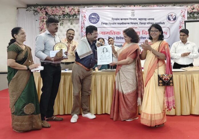 रत्नागिरी, दि. ०९ (प्रतिनिधी): जागतिक दिव्यांग दिनानिमित्त आस्था सोशल फाउंडेशनतर्फे प्रदान करण्यात येणारा प्रतिष्ठेचा ‘आस्था दिव्यांग प्रेरणा पुरस्कार’ यंदा हरहुन्नरी आणि जिद्दीचे प्रतीक ठरलेल्या धीरज राजेंद्र साठविलकर यांना प्रदान करण्यात आला. जिल्हा परिषदेच्या सभागृहात झालेल्या विशेष कार्यक्रमात जिल्हा परिषदेच्या मुख्य कार्यकारी अधिकारी वैदेही रानडे यांच्या हस्ते हा सन्मान प्रदान झाला.