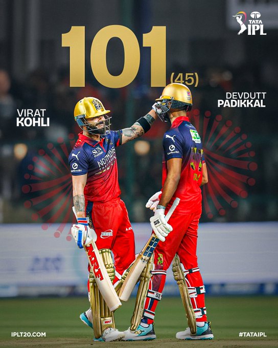 या दोघांनी दुसऱ्या गडीसाठी १०१ धावांची भक्कम भागीदारी करत सामना पूर्णपणे बंगळुरूच्या बाजूने झुकवला. देवदत्त पडिक्कलने केवळ २६ चेंडूंमध्ये ६१ धावा करत तुफानी खेळी केली. त्याच्या खेळीत ७ चौकार आणि ४ षटकारांचा समावेश होता. विशेष म्हणजे त्याने अवघ्या २१ चेंडूंमध्ये अर्धशतक पूर्ण केले. त्याच्या या खेळीमुळे सामना लवकर संपुष्टात येण्याची चिन्हे दिसू लागली.