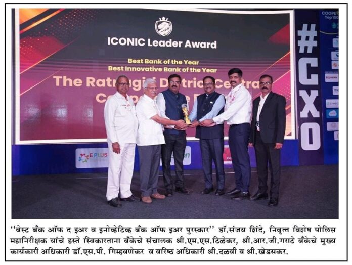 रत्नागिरी, दि. ०३ : सहकार क्षेत्रात सातत्याने भरीव व उल्लेखनीय कामगिरी करणाऱ्या रत्नागिरी जिल्हा मध्यवर्ती सहकारी बँकेला मे. ई प्लस इंटेलेक्च्युअल मिडीया, नवी मुंबई यांच्या वतीने आयोजित को-ऑप. बँक्स टॉप १०० समिट २०२५ अंतर्गत “बेस्ट बँक ऑफ द इअर” तसेच “इनोव्हेटिव्ह बँक ऑफ द इअर” हे दोन प्रतिष्ठेचे राष्ट्रीय स्तरावरील पुरस्कार प्रदान करण्यात आले. सहकार क्षेत्रातील उत्कृष्ट व्यवस्थापन, आर्थिक शिस्त, तंत्रज्ञानाचा प्रभावी वापर, तसेच शेतकरी व सामान्य जनतेच्या आर्थिक उन्नतीसाठी राबविण्यात येणाऱ्या नाविन्यपूर्ण उपक्रमांची दखल घेत बँकेची या पुरस्कारांसाठी निवड करण्यात आली.