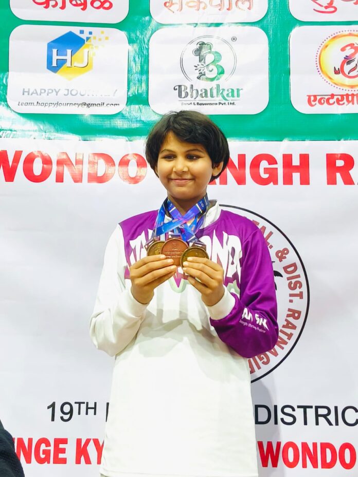 रत्नागिरी, दि. १४ :- रत्नागिरी येथे पार पडलेल्या १९ वी रत्नागिरी जिल्हा ओपन चॅलेंज पुमसे व क्युरोगी तायक्वांदो चॅम्पियनशिप २०२६ स्पर्धेत SRK तायक्वांदो क्लब, रत्नागिरी येथील सुवर्णकन्या खेळाडू स्वरा साखळकर हिने उत्कृष्ट कामगिरी करत २ सुवर्णपदके व १ कास्यपदक पटकावले.